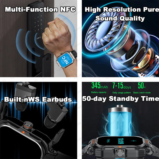 2-in-1 Smart Watch with TWS Earbuds | Heart Rate, Blood Pressure, Fitness Tracker
