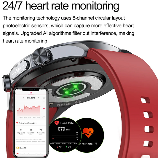 2024 Sport Smartwatch - 3ATM Waterproof, Bluetooth Call, Health Monitor, Flashlight